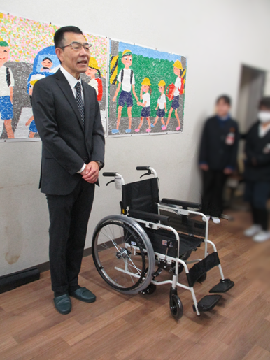 大垣市立東小学校より寄贈 今年も大垣市立東小学校の全校児童の皆さんが、 1年間かけてアルミ缶を回収した収益で「自動ブレーキ付き車椅子」を購入され寄贈してくださいました! ありがとうございました!! 3月6日贈呈式があり出席させていただきました。 その後、感謝状を贈らせていただきました。